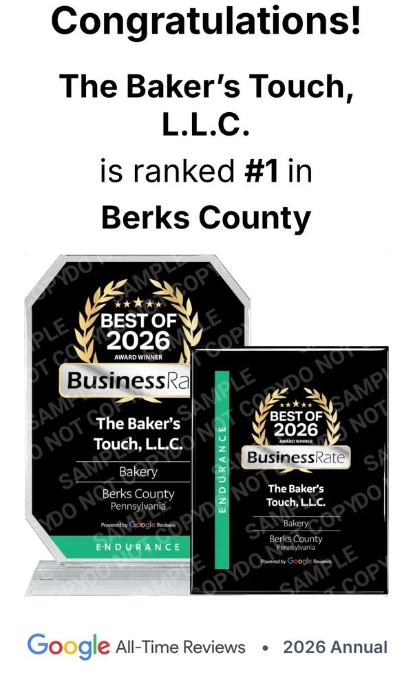 The Baker's Touch, L.L.C. is a family owned home-based bakery established in 2006 and is located in a private residence in Douglassville, Pa. Pam Kiehl, owner, baker and decorator provides homemade custom cakes, cupcakes, cookies and dessert trays for all of your special occasions. All cakes require advance order. We have no ready to go cakes or cupcakes on hand. We do not have a retail store or any baked goods available for walk up sales. We are open by appointment only AND have no set business hours!