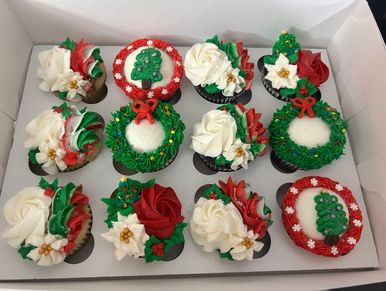 $25 - 6 custom themed Chrismas cupcakes. Vanilla or chocolate cake with vanilla buttercream icing.