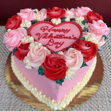Vanilla or chocolate cake with vanilla buttercream and roses around top of cake